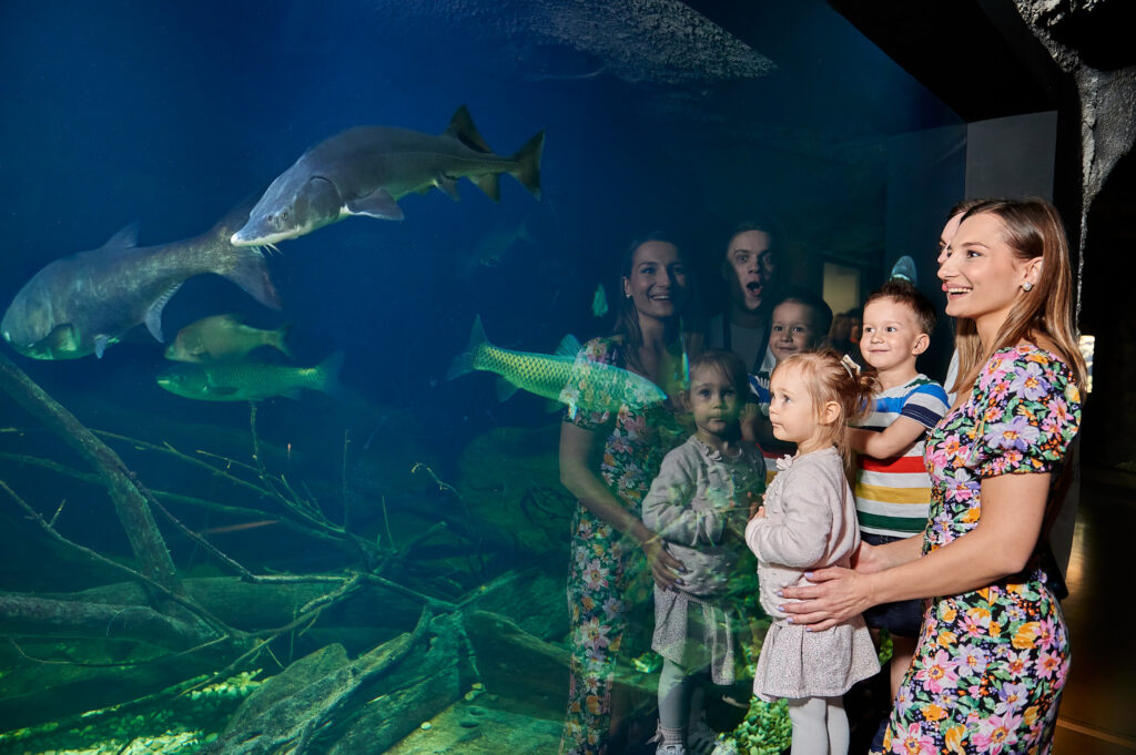 Najveća su atrakcija, naravno, najveći primjerci riba. U velikom su akvariju prikazane ribe iz porodice jesetri, koje pripadaju najstarijim ribljim vrstama i potječu još iz doba dinosaura! U vrijeme mrijesta neke vrste kreću na dug put iz mora prema slatkim vodama.